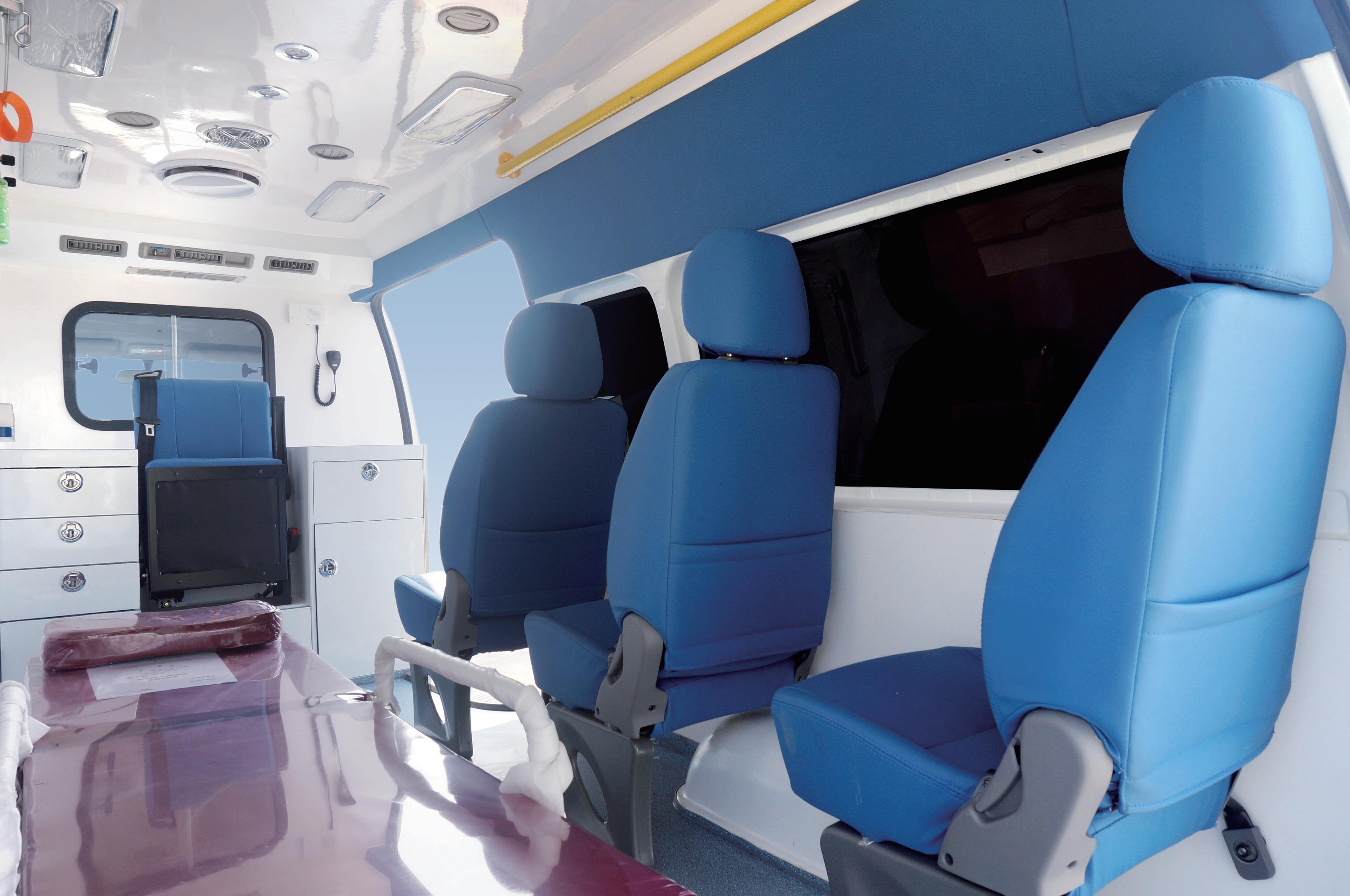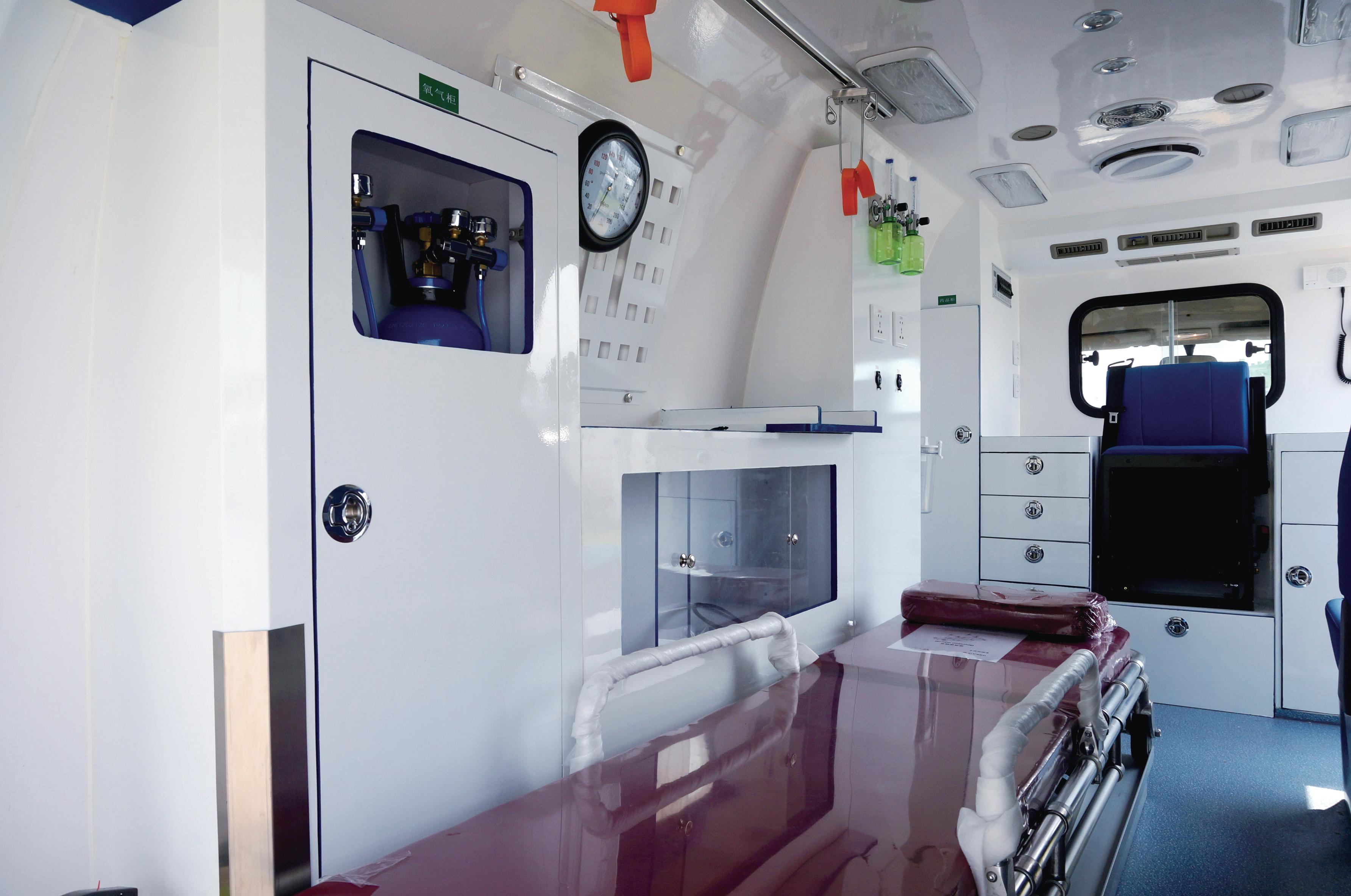 | 內飾部分 | 內飾板 | 醫療艙側圍、車頂、 中隔板內部區均采用玻璃鋼環保 材料裝飾 | ○ | ● |
