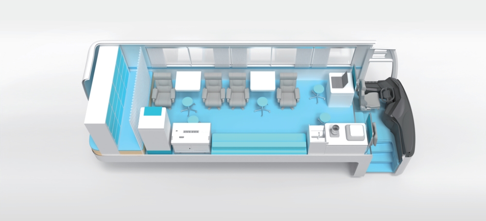 8米小中巴客車平臺,車內(nèi)空間安排有序,搭載市電空調(diào),配備2個采血位和4個采血椅,配有微波爐、食品冰箱、飲水機等生活設(shè)施,設(shè)有應急休息床,可最大限度保障獻血者的舒適度和人身安全。