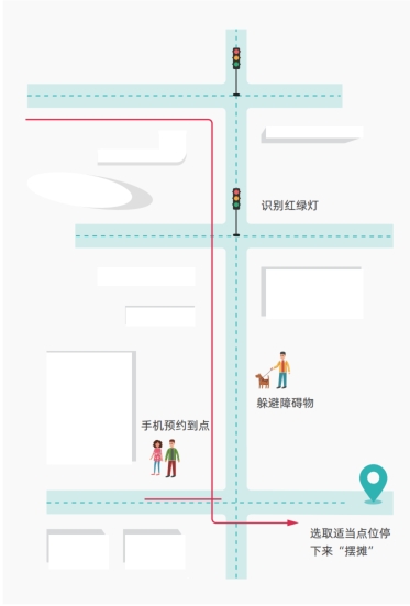 用戶如需購買車內商品, 可通過手機軟件在園區內隨時隨地呼叫售賣車至指定位置, 或定點等候附近的售 貨車,并自助完成購買。
