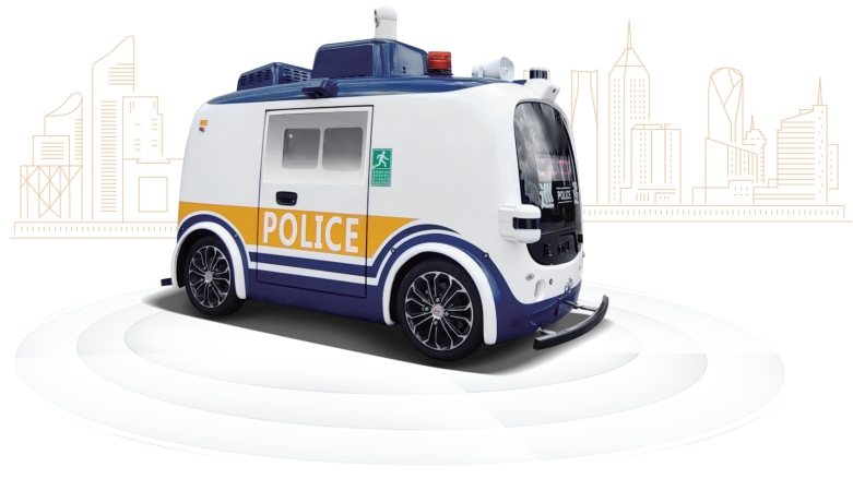 可乘坐內艙設計, 既可用于保安臨時隨車巡邏, 又方便人員在緊急情況下的應急避險, 適用于警務安保、 倉儲物流、大型生活園區、智慧工廠等場景。