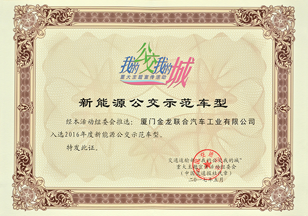 2016年度最佳新能源客車獎(XMQ6106AGBEVD)