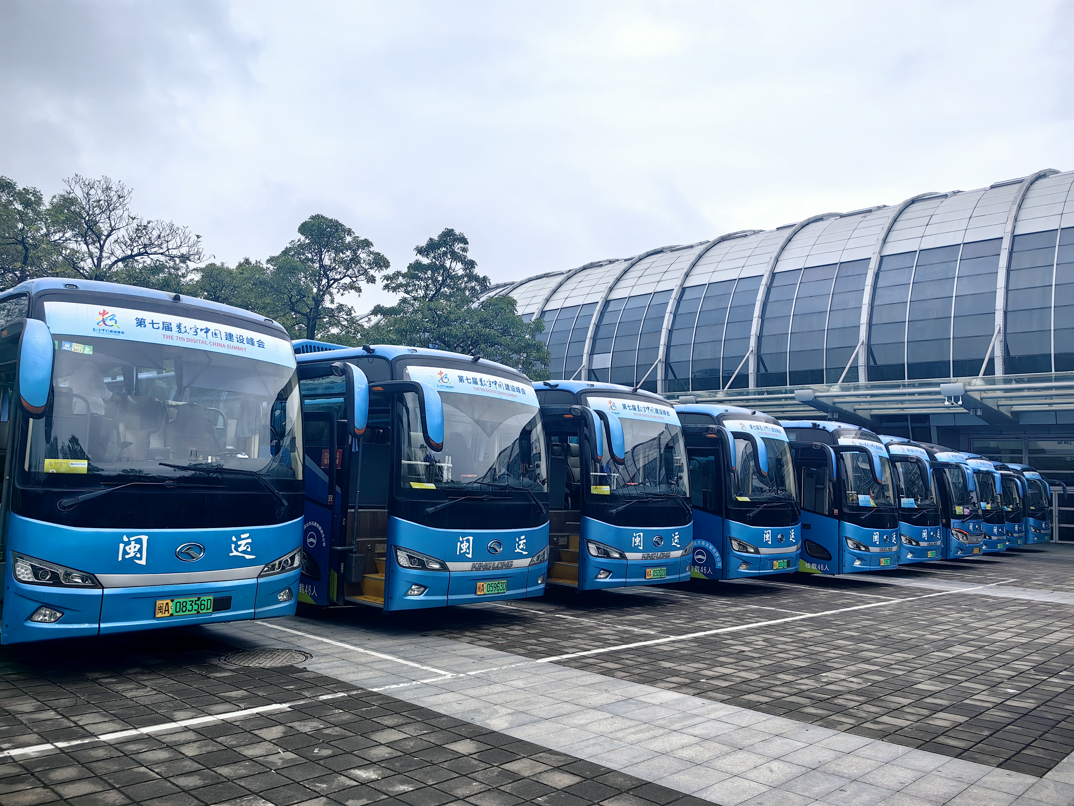 金龍作為福建汽車工業的代表,再次攜手閩運集團為峰會嘉賓、工作人員等提供通勤服務。110輛金龍客車再次“出征”,全力護航數字盛會,為數字中國建設峰會增添了一抹靚麗的“金龍藍”。