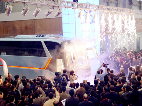 2000年,第10000輛金龍客車下線。2001年,金龍客車成為首個大批量服務“全國兩會”等大型國際會議的國產客車品牌,此后,金龍客車多次以“國賓”車的身份參與重大活動,以出色的保障贏得了“國車”的美譽。2005年,在進入西歐市場兩年后,金龍客車登上了世界客車的殿堂,成功跨越英國商用汽車認證的高門檻,率先取得了進入歐盟市場的通行證;同年,金龍客車首次代表中國客車登陸全球客車爭奪陣地——比利時車展,學習、借鑒國際先進的客車工業經驗,成長為國際客車工業不可忽視的東方力量。